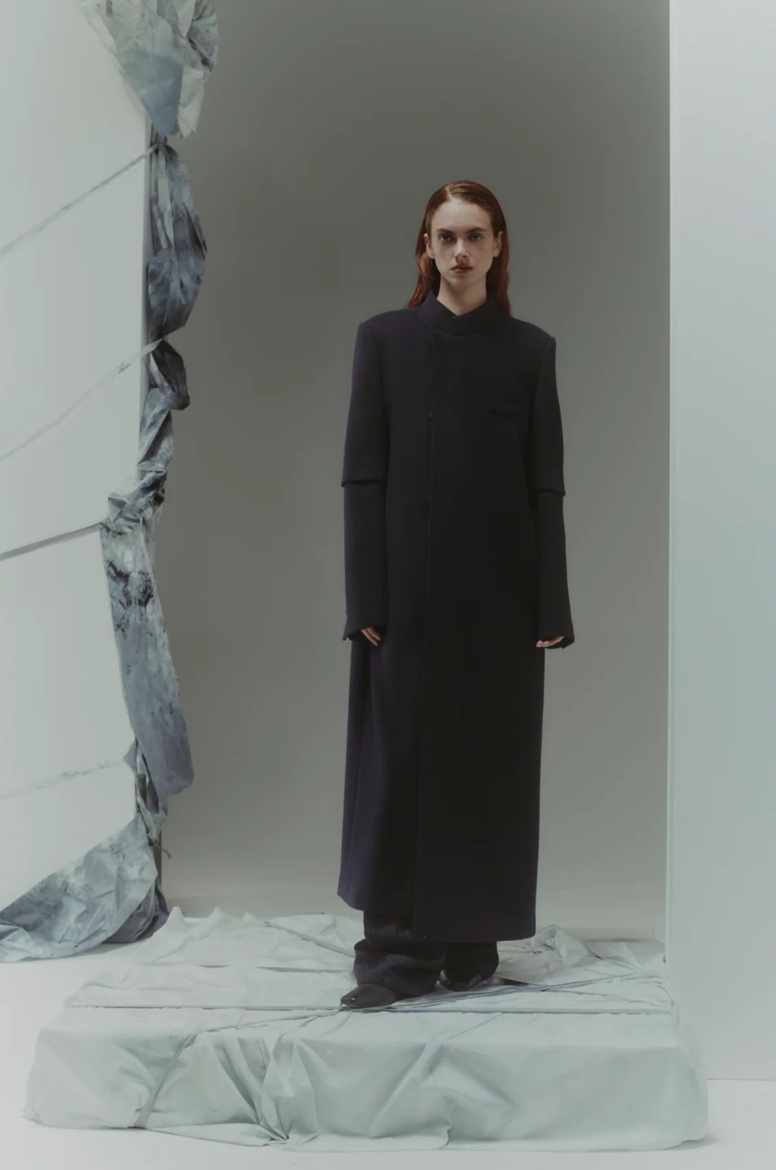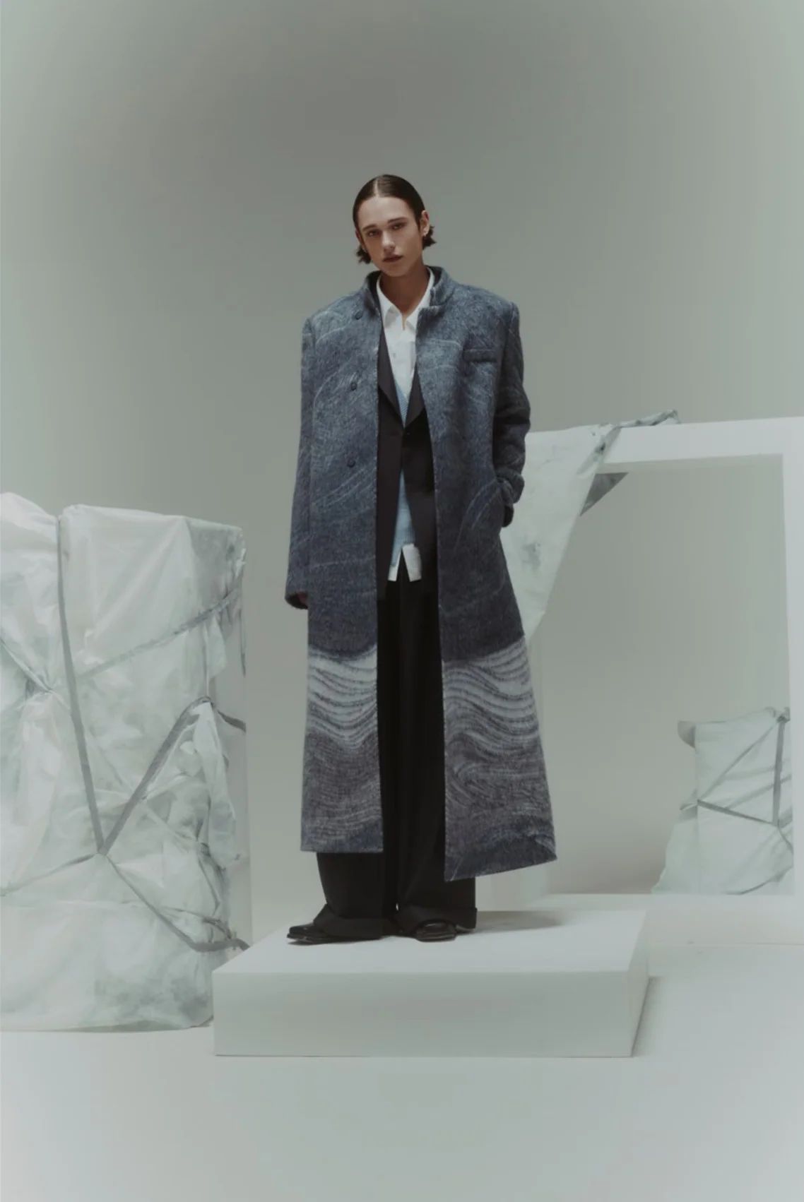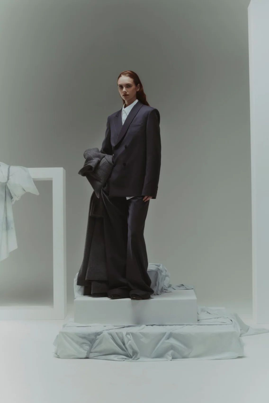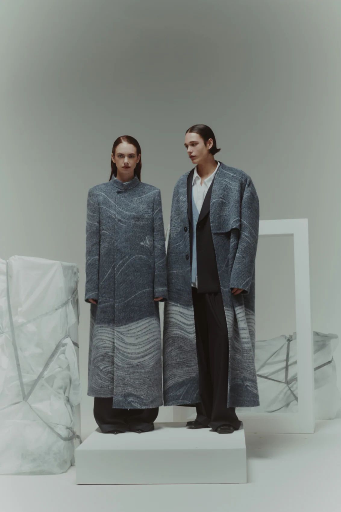 本季延续品牌核心的解构主义与极简美学,系列在原始粗粝与精致剪裁之间找寻张力。建筑感大衣、流动感结构、不对称下摆与外露缝线,讲述一场重塑自我的风格演进。系列采用可持续材料打造,并以大地棕、尘土灰、古董银等色调,展现深邃而克制的情绪张力。每一件作品是对慢节奏、手工艺与叙事力量的致敬——在ZONA20,时装不仅是一种穿着方式,更是一种跨越时间的自我表达。